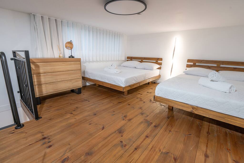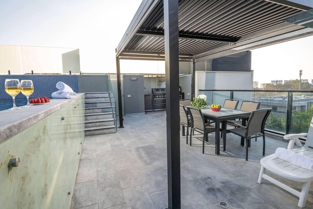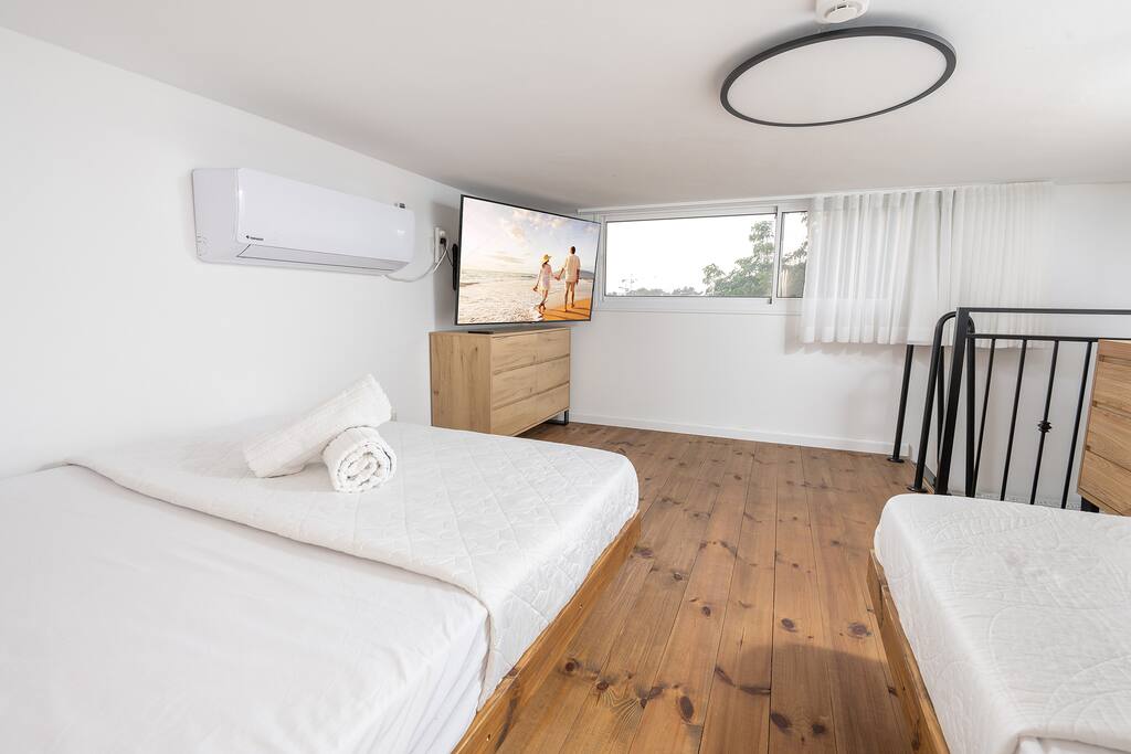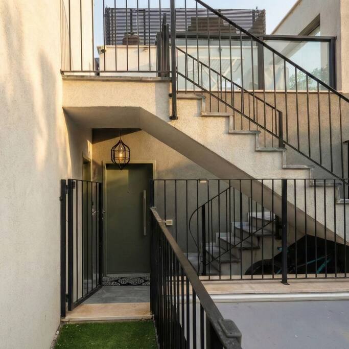 Welcome to the Margalit Suite – Your Western Galilee Sanctuary Located just a short walk from the stunning Achziv Beach, our suite offers a perfect blend of luxury and relaxation for up to 6 guests. Whether you are a family or a group of friends, you will enjoy a private getaway designed for comfort, featuring a modern interior, green views, and the ultimate highlight: a private heated rooftop pool facing the sea as well as a private Jacuzzi. Living & Sleeping Comfort The main level features a spacious, air-conditioned open-plan living area with a smart TV and a balcony perfect for morning coffee. In the balcony you will also find a big Jacuzzi located inside a Gazebo as well as a Kamado somker for the meat lovers. The fully equipped kitchen includes everything you need, from an induction cooktop and oven to a Nespresso machine and a purified water bar (Tami 4). Sleeping arrangements are flexible and cozy: the living room sofa converts into a high-quality queen-size bed, while the charming gallery loft upstairs features two double beds, personal TV, and ample storage. The Rooftop Oasis The real magic happens on the upper level, accessible via exterior stairs. This private rooftop is your personal playground, featuring a heated swimming pool with a retractable roof for year-round enjoyment. The area is fully equipped for all-day entertainment with a large TV, professional BBQ station, outdoor kitchen, dining area, sunbeds, and a second full bathroom. In addition you can enjoy a 7 ft. Pool Table, Air Hockey Table and Table Tennis. It is the perfect spot to soak up the sea breeze and watch breathtaking sunsets. Location & Atmosphere Nestled in a vibrant Kibbutz, the suite offers both privacy and culture. You are minutes away from the crystal-clear lagoons of Achziv Beach and "Mush" Beach. Explore the local artist workshops, visit the boutique deli "Jacques Délicatesse," or relax at the local beer garden. With a secure room (Mamad), free Wi-Fi, and nearby supermarkets, you have everything you need for an unforgettable stay.